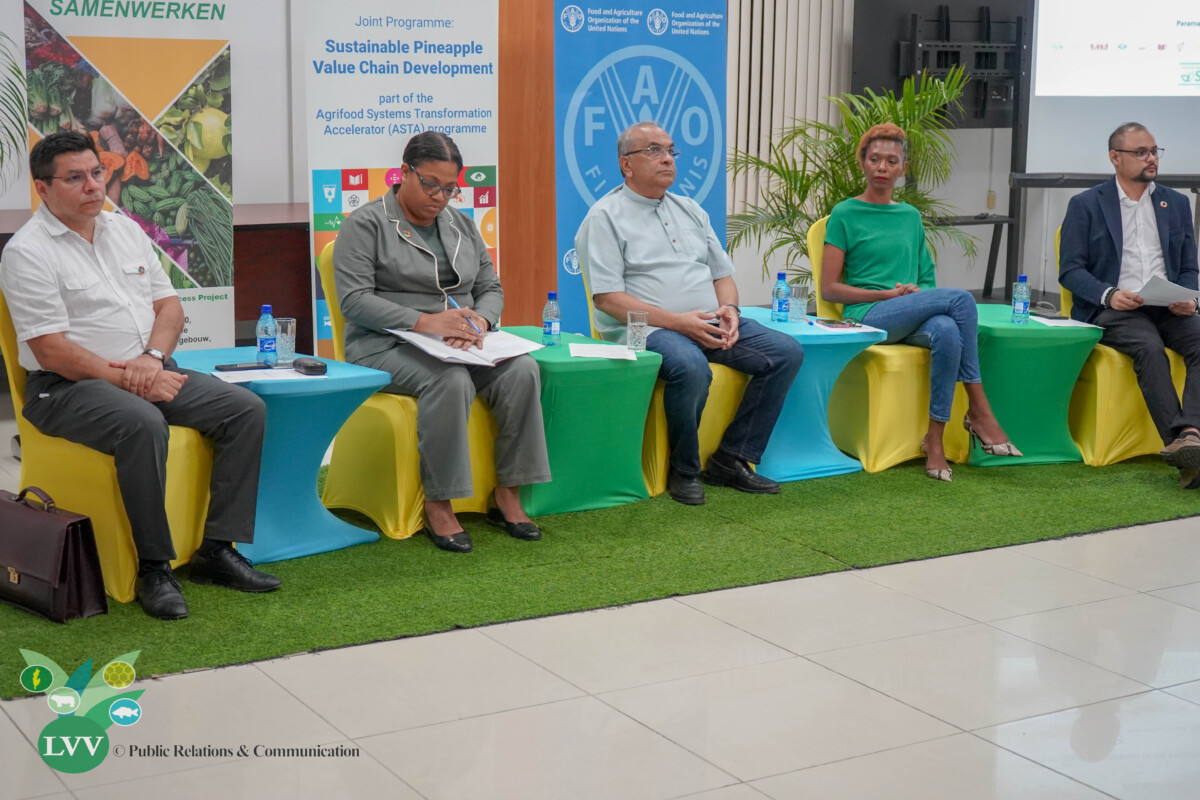 Meer dan 70 boeren, coöperaties, verwerkers, agribusiness en instellingen van de publieke sector kwamen op 27 juni bijeen in het SAIS-gebouw bij het ministerie van Landbouw, Veeteelt en Visserij (LVV) om over de ananassector te praten.
