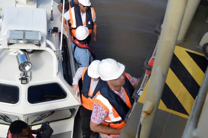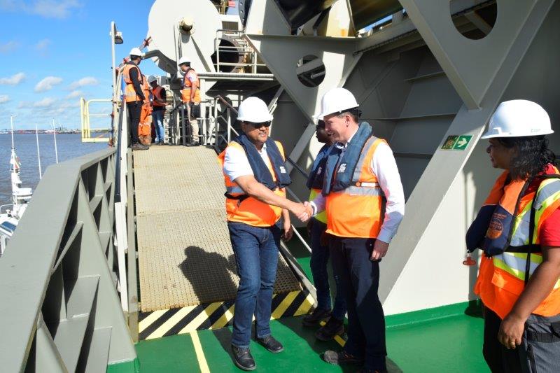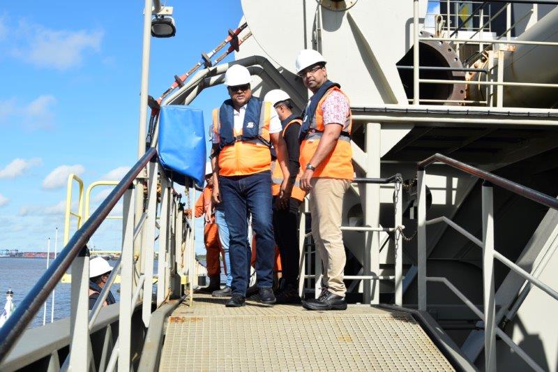 President Santokhi rondgeleid aan boord baggerschip De Boer-Boskalis