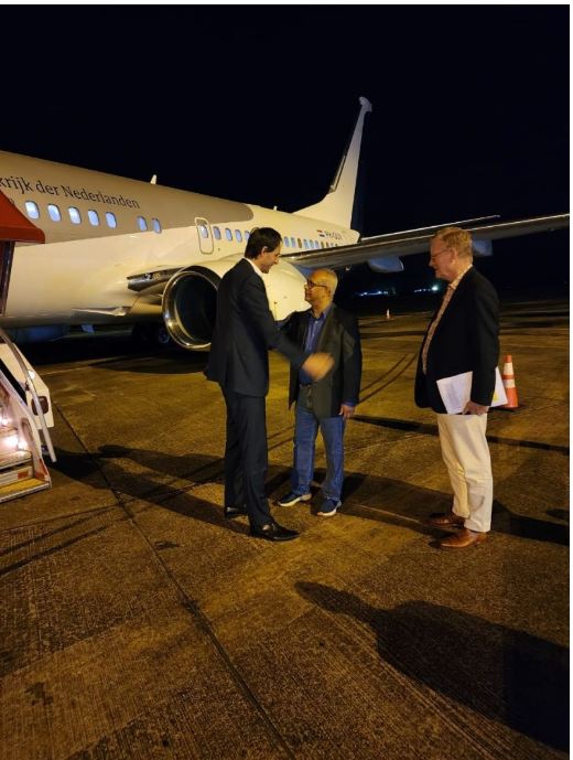 De Nederlandse minister van Buitenlandse Zaken Wopke Hoekstra is zaterdagochtend op de Johan Adolf Pengelluchthaven geland. De bewindsman werd verwelkomd door zijn Surinaamse collega Albert Ramdin van Buitenlandse Zaken, International Business en Internationale Samenwerking, BIBIS.