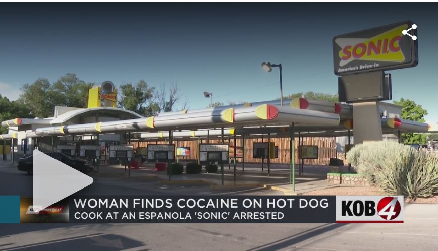 Een vrouw uit New Mexico meldde dat ze een zak wit poeder had gevonden in een hotdog van Sonic in South Riverside. Tests bevestigden dat het een gram cocaïne was. De politie is de kok, David Salazar, aan het vervolgen omdat hij beweert dat hij de cocaïne kocht van iemand op de Sonic-parkeerplaats. De Sonic in South Riverside is open en mensen reageren geschokt en ongerust. De supervisor van die locatie wilde geen commentaar geven over wat er gebeurd is.