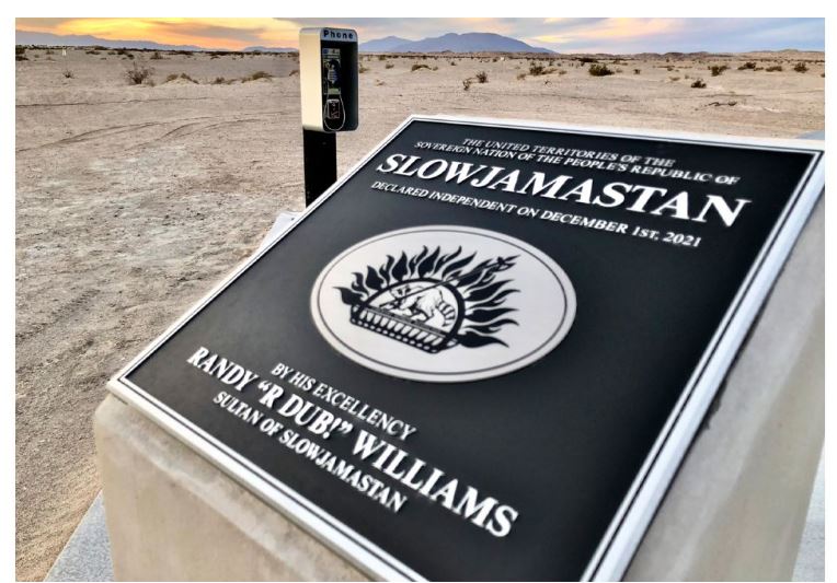 De sultan van Slowjamastan, Randy ‘R Dub!’ Williams, is een nachtelijke ‘slow jam’-DJ uit San Diego die geen landen meer te bezoeken had, waardoor hij besloot om zijn eigen land te creëren. Hij kocht 11,07 hectare leeg, dor grond in de Californische woestijn en verklaarde in december 2021 officieel de onafhankelijkheid van Slowjamastan.