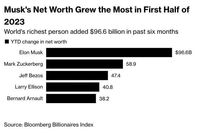 De 500 rijkste mensen ter wereld hebben in de eerste helft van 2023 $ 852 miljard aan hun fortuin toegevoegd