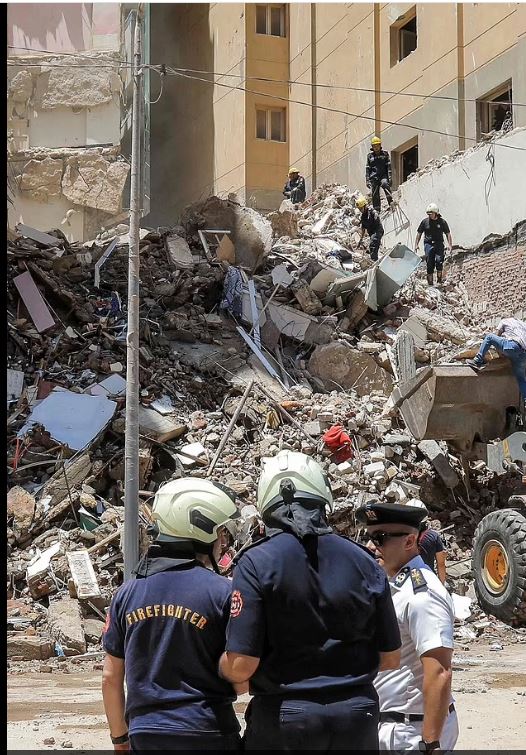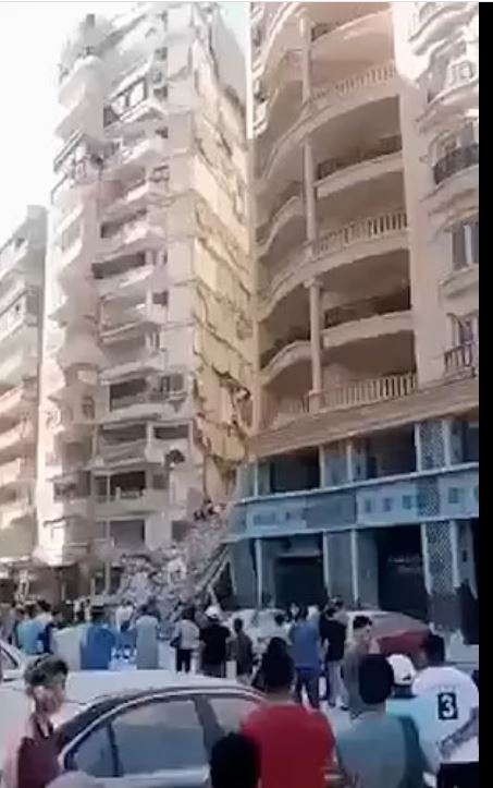 Het torenblok in de noordelijke stad Alexandrië in Egypte is vanmorgen catastrofaal ingestort, waardoor rookwolken de lucht in zijn geschoten.