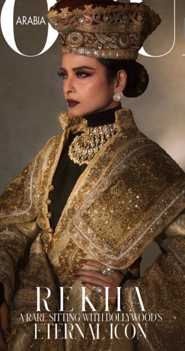 Op 69-jarige leeftijd dient Rekha als een rolmodel voor de komende generaties, en ze telt zelfs de grootste namen in de branche onder haar fans. In de woorden van voormalig Vogue Arabia-coverster Deepika Padukone: “Rekha’s aura is magnetisch. Met één oogopslag weet ze moeiteloos een heel publiek te boeien en haar optredens zijn een masterclass acteren.”