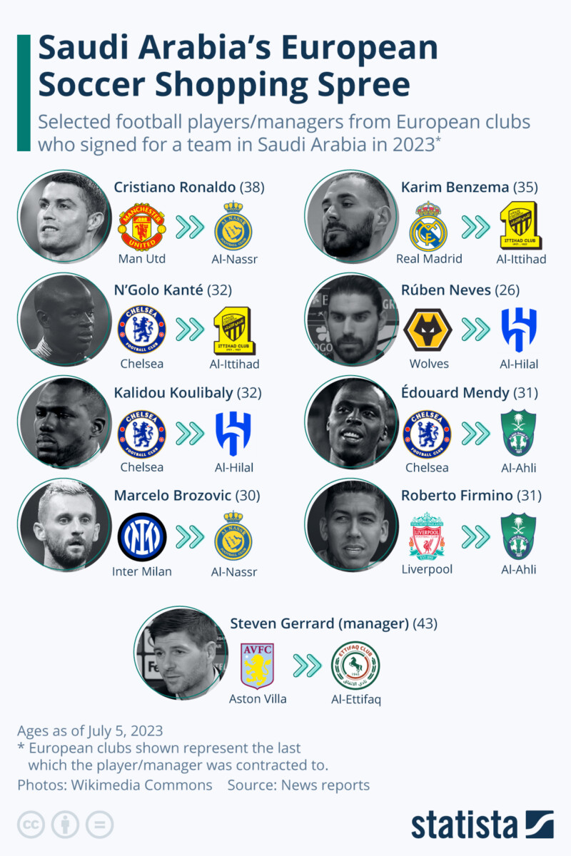 Met zijn verhuizing in januari naar Al-Nassr, de Portugese superster, bracht de Portugese superster Cristiano Ronaldo de bal aan het rollen in wat is uitgegroeid tot een geweldig jaar voor spraakmakende spelers die Europa verlaten ten gunste van het extreem lucratieve land dat nu op het Arabische schiereiland te vinden is.