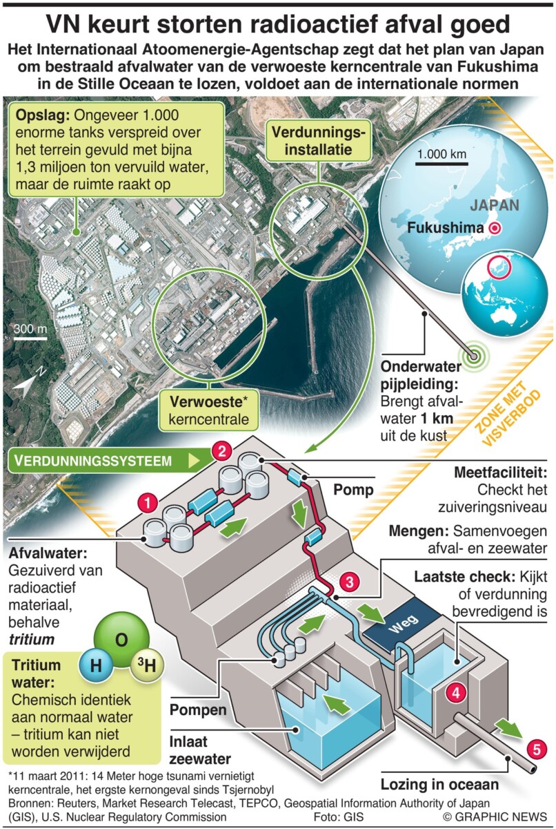 De Japanse regering bevestigde in januari dat ze in het voorjaar of de zomer van 2023 zal beginnen met het dumpen van het bestraalde water in de Stille Oceaan, ondanks sterke tegenstand in eigen land, haar buurlanden en de internationale gemeenschap.