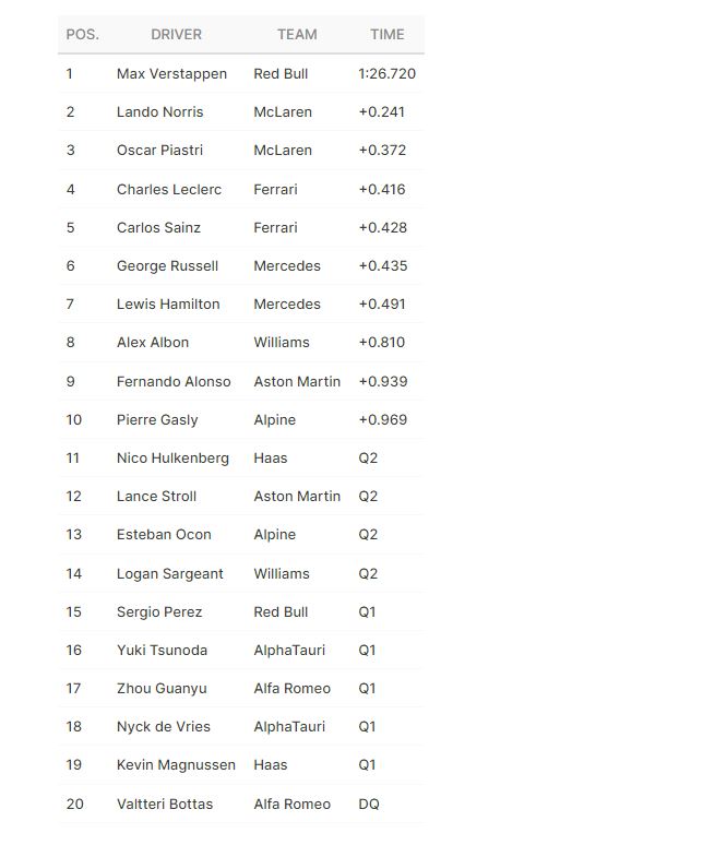Max Verstappen heeft opnieuw de pole position behouden tijdens de kwalificatiesessie op Silverstone. Hij zal de Britse Grand Prix van zondag vanaf de eerste plek starten. Lando Norris kwalificeerde zich als tweede, terwijl McLaren een sterke prestatie neerzette met een tweede en derde plaats. Verstappen versloeg Norris met meer dan twee tienden van een seconde. Sergio Perez had opnieuw een teleurstellende kwalificatie en begint de race vanaf de 16e plaats. Valtteri Bottas start als laatste na diskwalificatie.