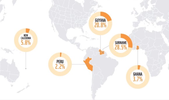 Suriname staat wereldwijd op nummer 1 als het gaat om MRD. Dit staat voor mijnbouwgerelateerde ontbossing. Dit heeft het WWF-Guianas bekendgemaakt. Van het totale bosverlies tussen 2001 en 2020, wat neerkomt op 1.847 km2, is 28,5% veroorzaakt door uitbreiding van mijnen. Guyana komt op de tweede plaats met 20,8%.