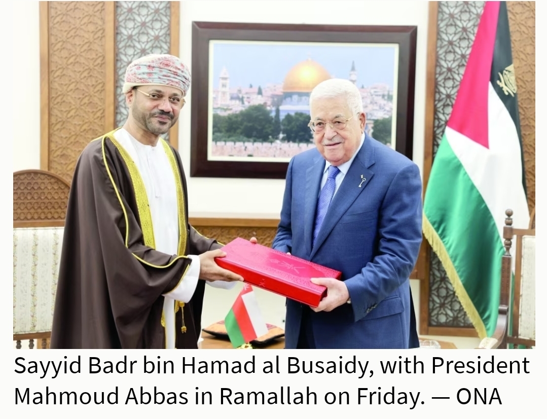 Sultan Haitham bin Tarik heeft een bericht gestuurd naar president Mahmoud Abbas, waarin de bilaterale betrekkingen tussen beide landen en manieren om deze te versterken worden besproken.