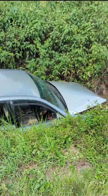 Hij belandde rechtstreeks met zijn voertuig in een goot.