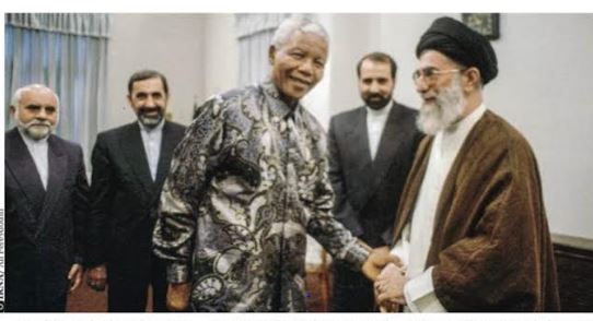 land. We weten uit een toespraak van Ayatollah Khamenei dat Mandela Teheran bezocht voordat hij president was geworden. Tijdens de reis ontmoette hij de leider van Iran en vroeg hij naar de overwinning van de islamitische revolutie. “Tegen de tijd dat Mandela hier aankwam, vochten hij en zijn collega’s in het ANC (African National Congress) al 30, 40 jaar tegen apartheid. Hij vertelde me dat hij tijdens zijn gevangenschap had gehoord over de Iraanse revolutie en vroeg hoe we erin slaagden het despotische regime omver te werpen. Ik vertelde hem dat ‘in mijn ervaring en die van wijlen imam Khomeini, de sleutel tot succes is om één te worden met de harten en geesten van mensen. Mensen moeten het podium betreden met hun emoties en overtuigingen. Kort daarna dat we massale protesten in de straten van Zuid-Afrika zagen plaatsvinden en dat het apartheidsregime vervolgens werd omvergeworpen’, zei ayatollah Khamenei tijdens de toespraak.