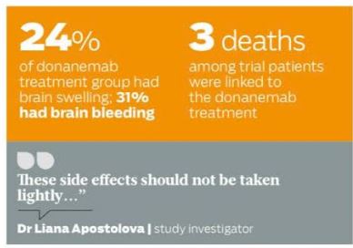 De studie toonde echter ook aan dat hersenopzwelling, een bekende bijwerking van het medicijn, bij meer dan 40% van de patiënten optrad. Er waren ook drie sterfgevallen gekoppeld aan de behandeling met donanemab.