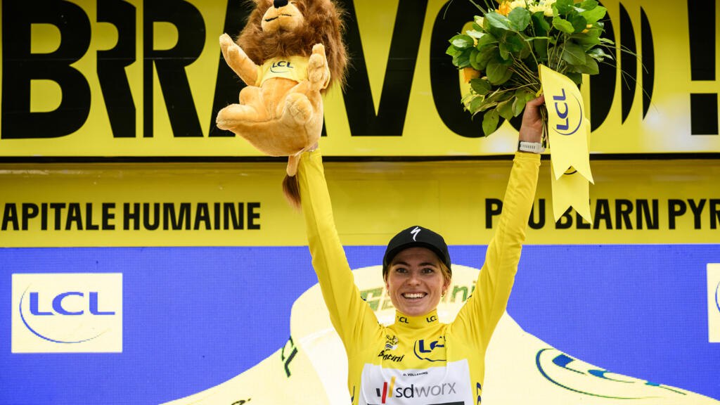 De Nederlandse renner Demi Vollering won zondag de Women’s Tour de France nadat Marlen Reusser de laatste etappetijdrit in Pau opeiste.