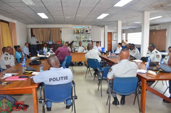 Het Monitoringsteam Veiligheid Ondernemers heeft donderdag 3 augustus een ontmoeting gehad met waarnemend korpschef van het Korps Politie Suriname, KPS, commissaris Ruben Kensen en de ressortcommandanten van Regio Midden. Het doel van deze ontmoeting was om van gedachten te wisselen over een pilotprogramma met betrekking tot de algemene veiligheidsmaatregelen binnen Paramaribo en Wanica, die al effectief zijn.