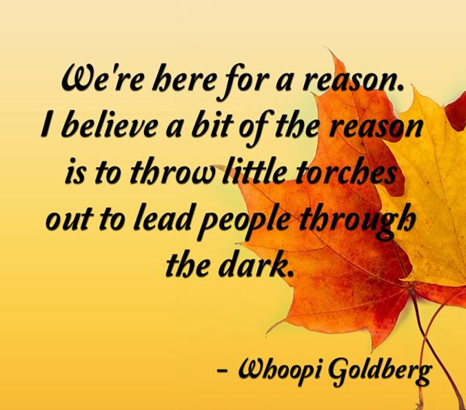 “We are all here for a reason. I believe the reason is to throw little torches out to lead people through the darkness.”