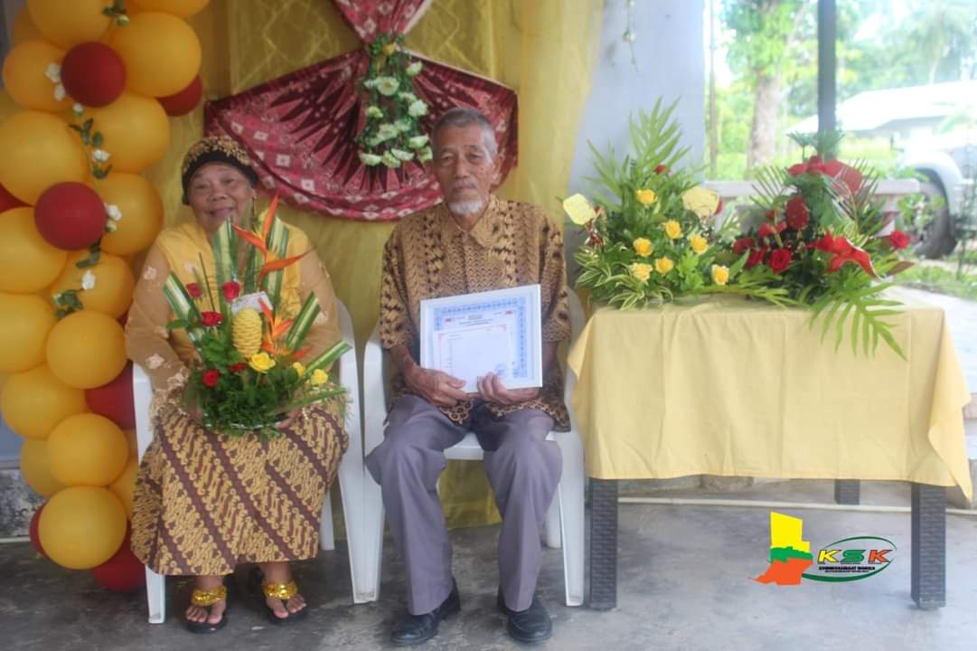 Het echtpaar Toekimin Wongsosetiko-Kenie Sahit van het ressort Koewarasan wed vrijdag 18 augustus gehuldigd in verband met hun 50-jarig huwelijksjubileum.
