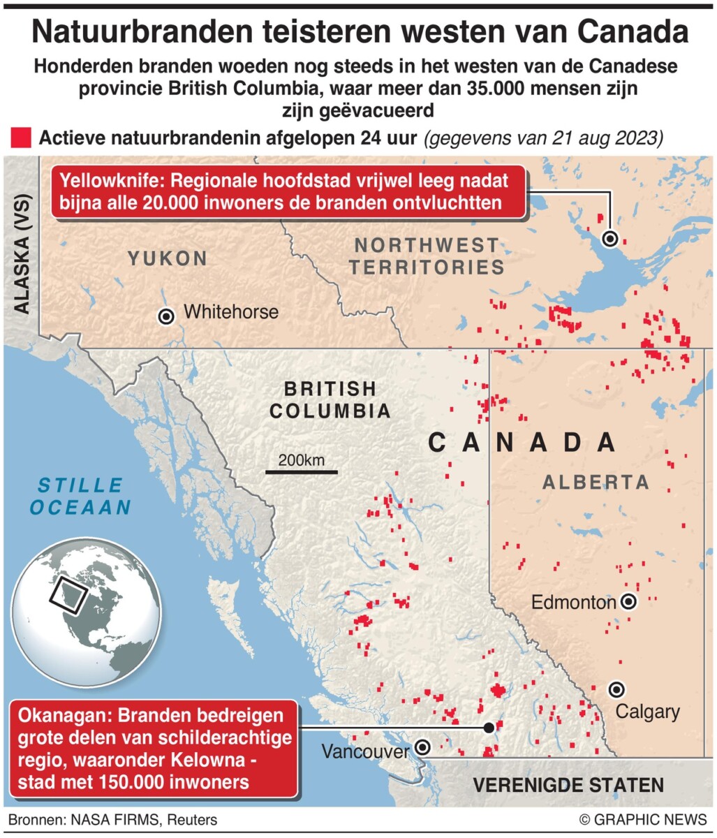21 augustus 2023 – Canada stuurt het leger om de snel verspreidende bosbranden in British Columbia aan te pakken, waar meer dan 35.000 mensen evacuatiebevelen hebben gekregen.