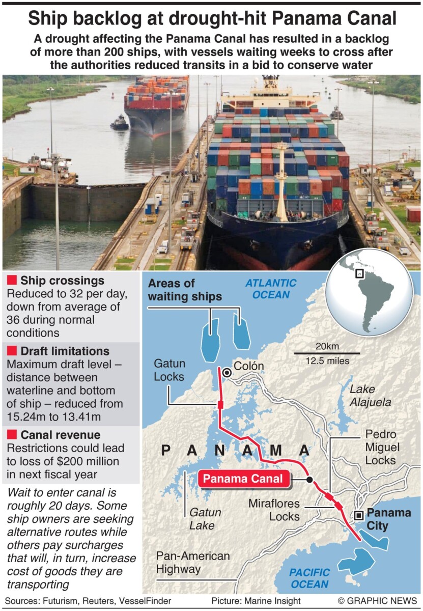 De Panama Canal Authority heeft het maximale scheepsgewicht en het aantal dagelijkse scheepsovertochten verlaagd in een poging water te besparen. Deskundigen op het gebied van maritiem transport vrezen dat dergelijke gebeurtenissen de nieuwe norm zouden kunnen worden, omdat neerslagtekorten in het op vier na natste land ter wereld de klimaatrisico’s voor de zeescheepvaartsector, die 80% van de wereldhandel voor zijn rekening neemt, onder de aandacht brengen.