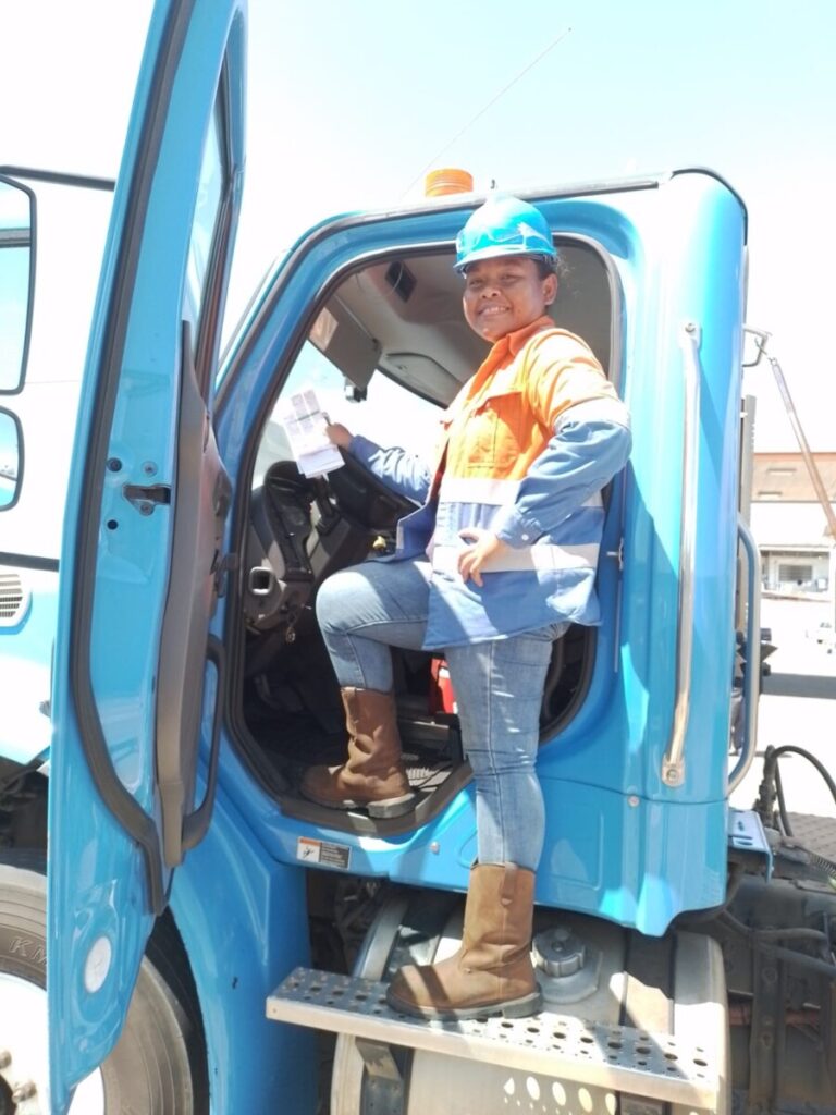 Ze is “truckdriver” van beroep, en heeft jarenlange ervaring achter haar kiezen. Sinds ongeveer een jaar rijdt ze de grote brandstoftanker van SOL voor de levering van brandstof aan pompstations in stad en district. Daarvoor werkte ze 16 jaar voor Haukes, waarvan de eerste 10 jaren als “truckdriver” van zware vrachtwagens. Onder meer was ze belast met transport van bauxiet uit de mijnen.