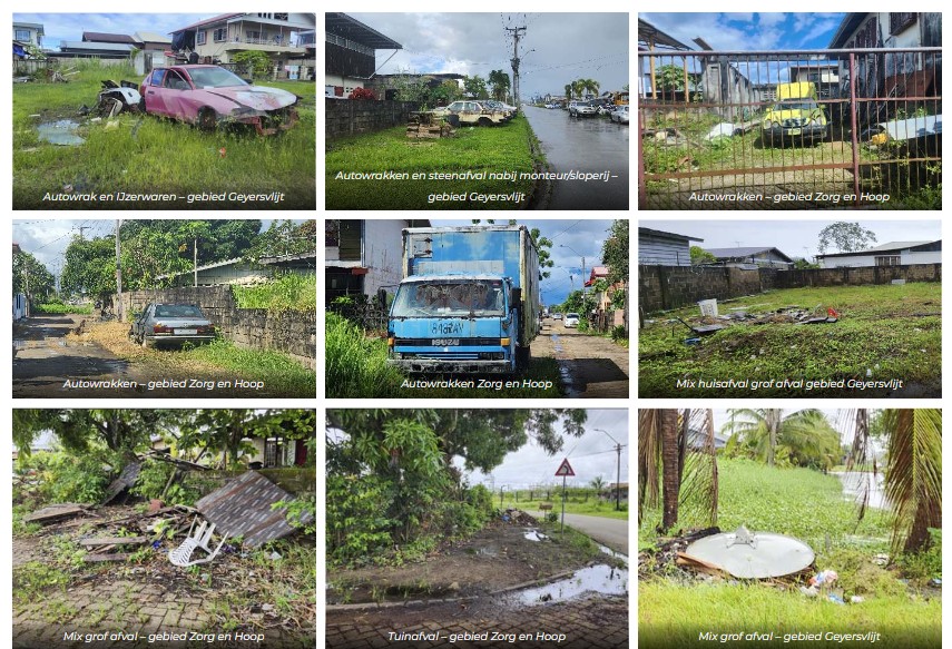 Uit een recent onderzoek naar grofvuil in de verschillende wijken, is er een aanzienlijke hoeveelheid grofvuil geconstateerd op zo’n 20 illegale vuilstortplaatsen in het gebied Geyersvlijt en meer dan 50 illegale vuilstortplaatsen in het gebied van Zorg en Hoop. Het onderzoek is een project, uitgevoerd door het ministerie van Ruimtelijke Ordening en Milieu.
