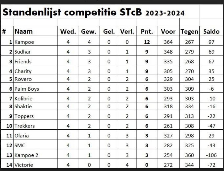 Hoogste score Kampoe: Dinesh Hardin – Jawalapersad Sital 26 punten