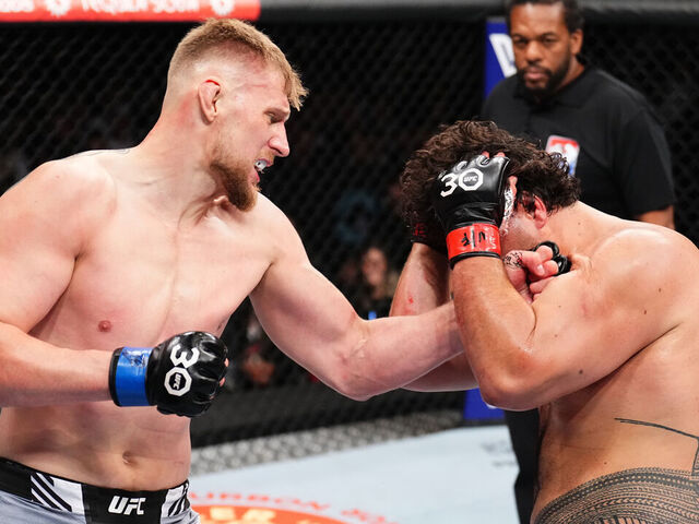 Volkov tikt Tuivasa aan met zeldzame Ezekiel-choke in zwaargewichtgevecht