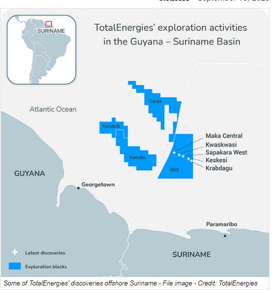 TotalEnergies kondigt de start van ontwikkelingsstudies aan voor een groot olieproject in Blok 58 voor de kust van Suriname.