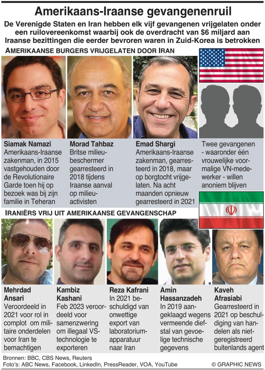 September 19, 2023 – De Verenigde Staten en Iran hebben elk vijf gevangenen vrijgelaten op grond van een uitwisselingsovereenkomst die ook de overdracht van $6 miljard aan niet-bevroren Iraanse olieactiva omvat.