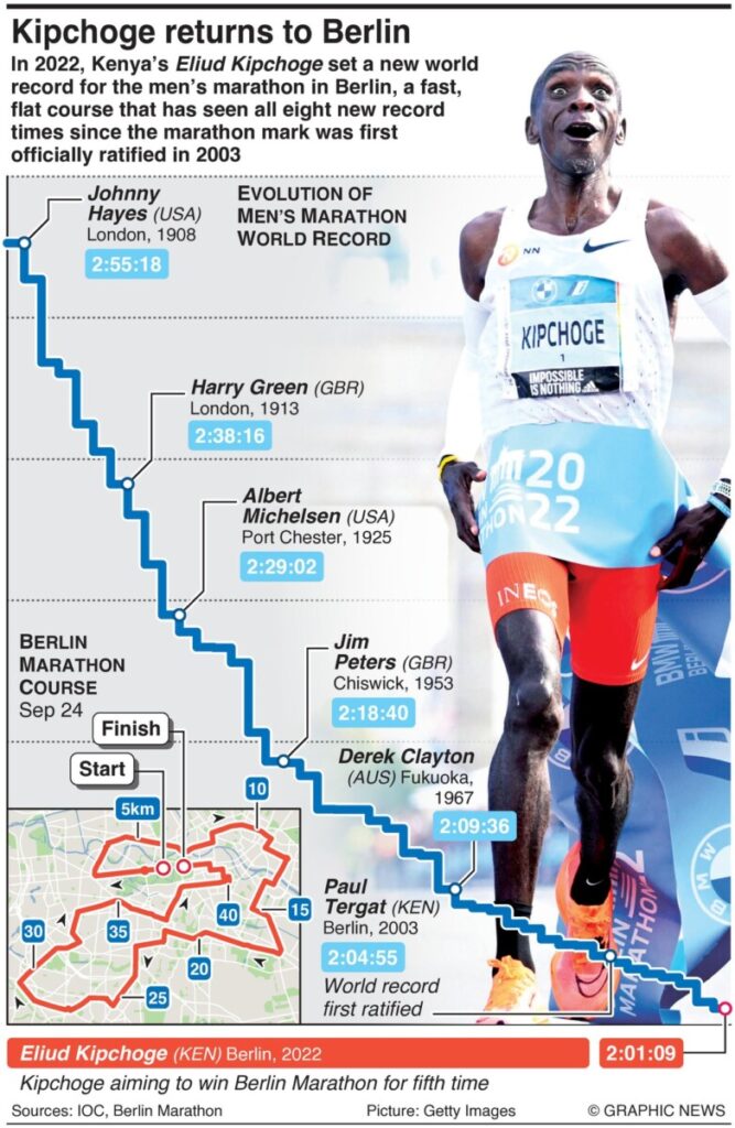 September 24, 2023 – In 2022 vestigde de Keniaan Eliud Kipchoge een nieuw wereldrecord op de marathon voor mannen in Berlijn, een snel, vlak parcours dat alle acht nieuwe recordtijden heeft gekend sinds de marathonmarkering voor het eerst officieel werd bekrachtigd in 2003.