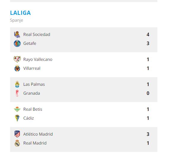 Atletico Madrid, dat terugkaatste van een mindere prestatie volgens coach Diego Simeone, staat nu vijfde in de competitie. Real Madrid staat derde, één punt achter koploper Barcelona. Real Madrid miste sterspeler Vinicius Junior vanwege een maagprobleem.