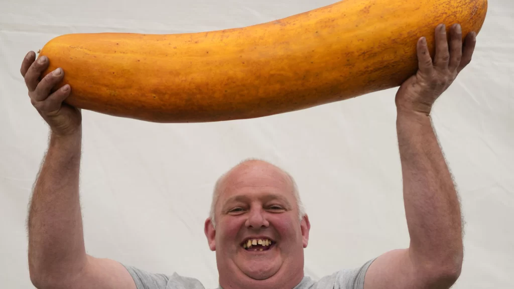 Vince zegt, dat zijn groenten zo groot groeien vanwege de frisse lucht op zijn perceel in Barry, in de Vale of Glamorgan, evenals de ‘geheime formule’ die hij gebruikt. “Het is een geweldige prestatie. Ik was vanmorgen aan het praten met de voormalige wereldrecordhouder David Thomas, en hij was verbaasd. De komkommer groeide in een hangmat op een steiger, wat hielp om het gewicht te dragen.”
