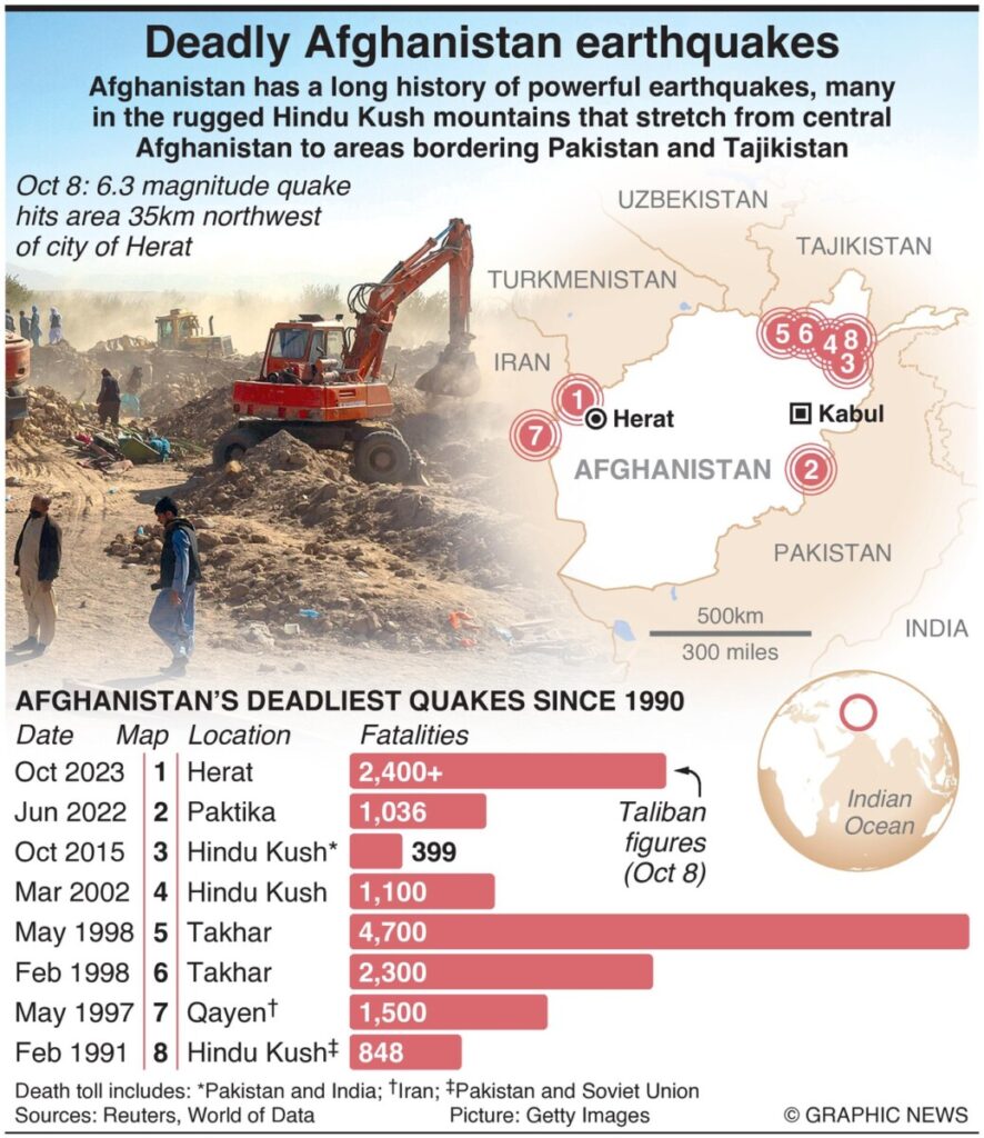 De aardbevingen op zaterdag in het westen van het land troffen 35 km ten noordwesten van de stad Herat, met een kracht van 6,3, aldus de US Geological Survey (USGS).