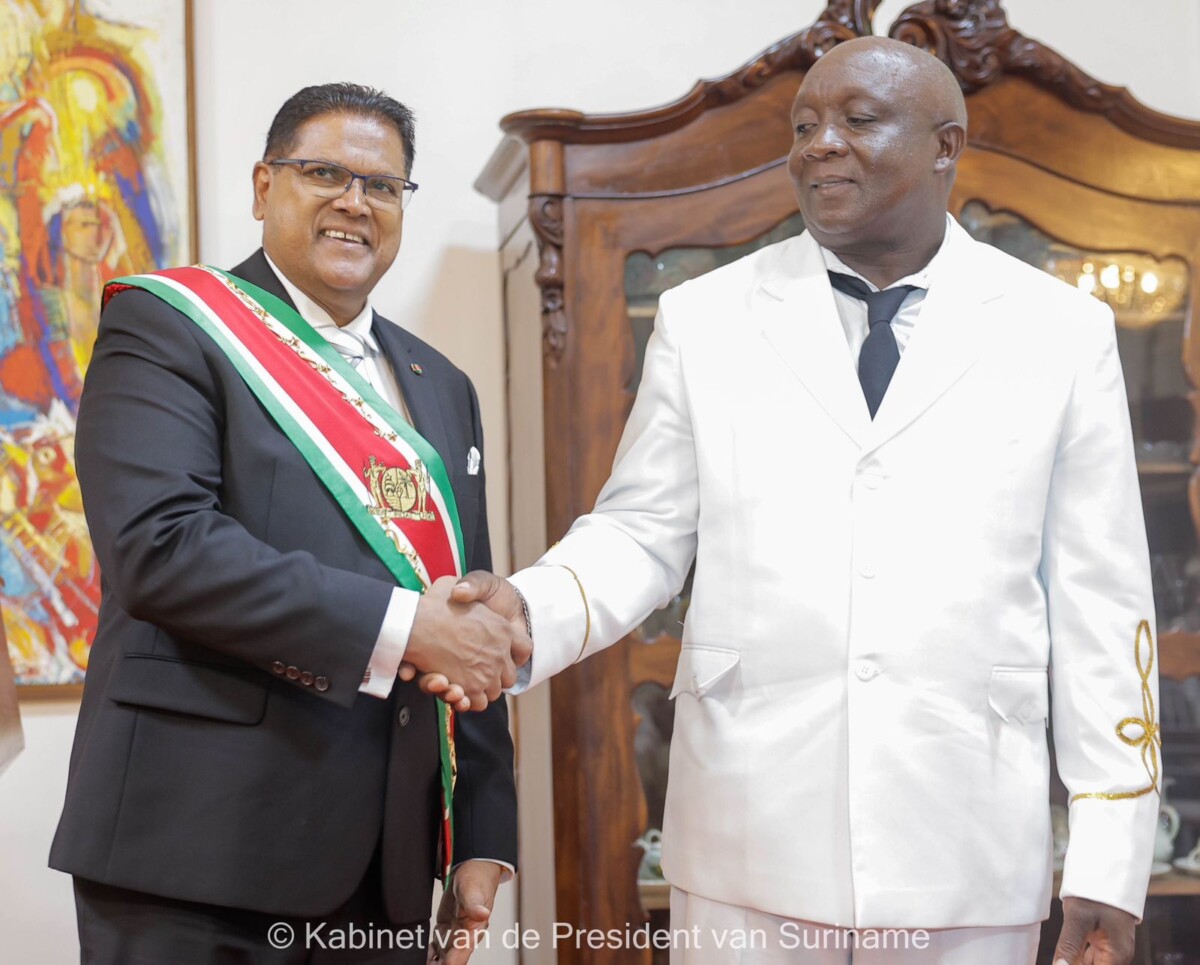 President Chandrikapersad Santokhi heeft maandag 9 oktober in het presidentieel paleis de granman der Aluku’s, Simeon Glunder officieel beëdigd en geïnstalleerd.