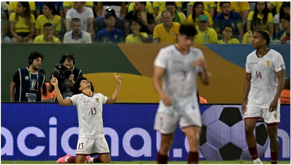 Na een late gelijkmaker van Eduard Bello heeft Venezuela een zeldzaam gelijkspel behaald tegen Brazilië. Gabriel, verdediger van Arsenal, opende de score voor Brazilië na een hoekschop. Venezuela ging na het doelpunt meer aanvallend spelen en Wilker Angel kopte net naast uit een hoekschop. Rodrygo kreeg vervolgens een goede kans, maar schoot naast. In de laatste vijf minuten maakte Jefferson Savarino een voorzet en Bello maakte een spectaculaire omhaal om de gelijkmaker te scoren. Als gevolg van het resultaat staat Brazilië op de tweede plaats in het kwalificatieklassement, twee punten voor op Colombia en twee punten achter Argentinië.