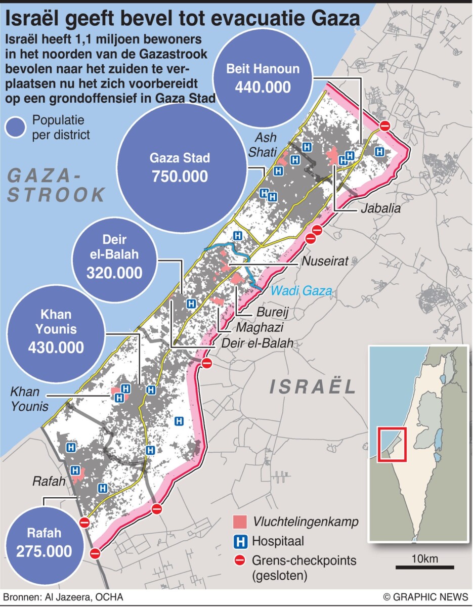 Israël heeft 1,1 miljoen inwoners in het noorden van de Gazastrook opdracht gegeven naar het zuiden te trekken terwijl het zich voorbereidt op een grondoffensief in Gaza-stad.