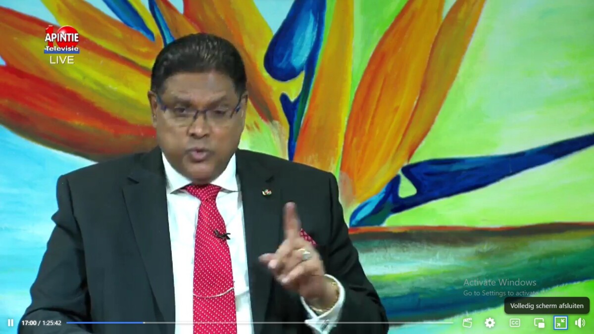 “Mensen kijken naar de politieke termijn. Ik heb gekozen voor de lange termijn. Ik kijk niet naar de volgende verkiezingen, maar naar de volgende generatie. We brengen offers voor de toekomst. Ik zeg, low tek a pina now gie den tjing en gran pikin fu unu. Laten we de offers nu brengen voor de toekomst, voor onze kinderen en kleinkinderen”, zo sprak de president in het programma ‘To the Point’ op Apintie televisie.