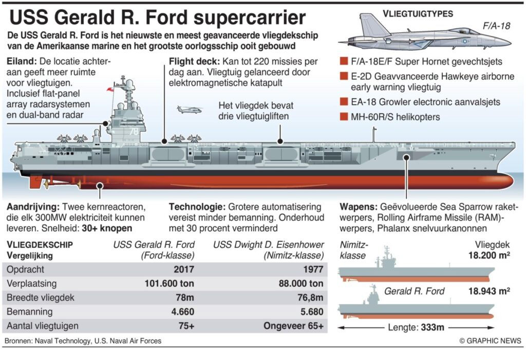 De Gerald R. Ford-carrier arriveerde begin vorige week samen met ondersteunende schepen in het oostelijke Middellandse Zeegebied.