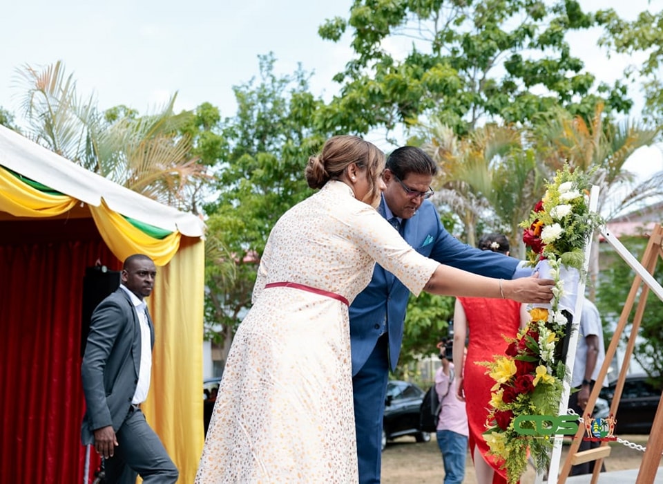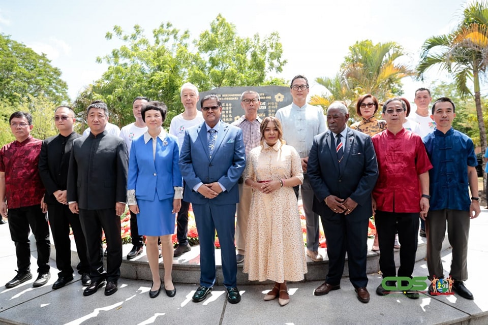 President Chan Santokhi heeft samen met First Lady Mellisa Santokhi een krans gelegd bij het monument van Chinese Immigratie in het Vriendschapspark. Daarbij waren ook de Chinese minister van Overzeese Chinse Zaken Chen Wu en de Chinese ambassadeur Han Ying aanwezig. Volgens president Santokhi is het belangrijk om een eenheid te vormen. “Laten we samen blijven bouwen aan de toekomst van ons geliefd Suriname. In eenheid liggen de sleutels tot groei en welvaart”, sprak hij.