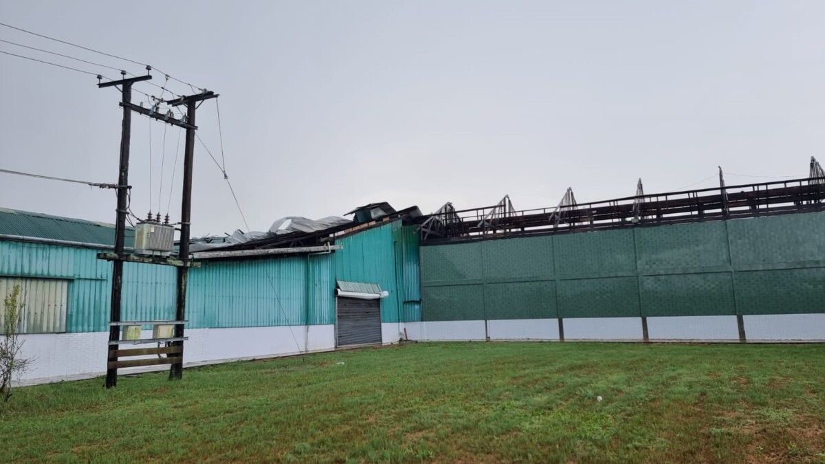 Een aantal magazijnen van bedrijven zoals Mahawatkhan en Mangie zagen delen van hun dakbedekking losraken, wat kan leiden tot verlies van opgeslagen producten en verstoring van hun activiteiten.