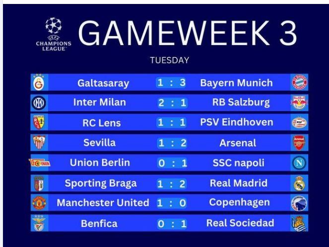 Andre Onana en Harry Maguire speelden een cruciale rol in de overwinning van Manchester United op FC Kopenhagen in de Champions League-wedstrijd. Maguire scoorde het enige doelpunt van de wedstrijd met een kopbal, terwijl Onana een strafschop stopte in de laatste minuten. De overwinning was opgedragen aan voetballegende Bobby Charlton, die recentelijk overleed. United had hun eerste twee groepswedstrijden verloren, maar zijn nu weer in de race voor de laatste zestien. Bayern München won ook hun wedstrijd tegen Galatasaray en staat op het punt zich te kwalificeren.