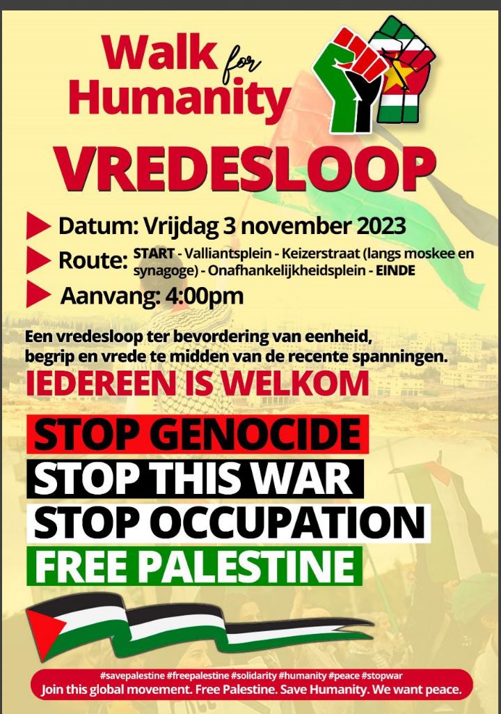 Stille loop in Suriname in verband met “Free Palestina” kwestie