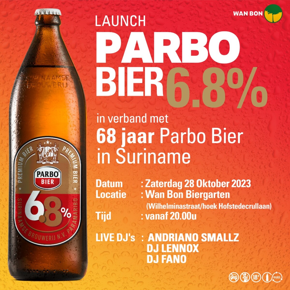 Surinaamse Brouwerij N.V. lanceert Parbo Bier 6.8% ter ere van haar 68-jarig jubileum. Dit nieuwe amberkleurige bier met een hoger alcoholpercentage is bedoeld om de passie voor innovatie en lokale trots te benadrukken.