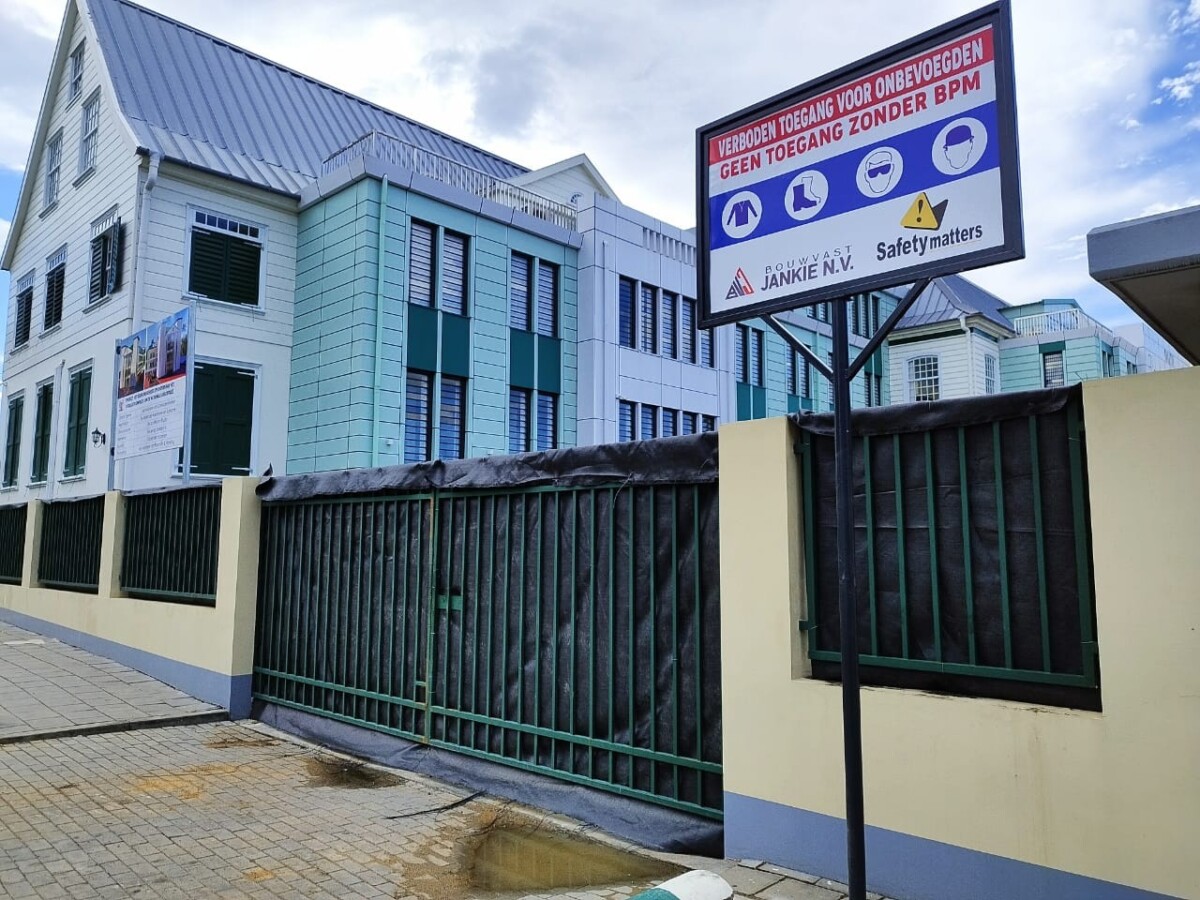 De bouw was stopgezet, omdat een cluster van de ministers van Onderwijs Wetenschap en Cultuur, Openbare Werken en Buitenlandse Zaken, International Business en Internationale Samenwerking het project onder een vergrootglas hebben gezet. Er kwamen na het overleg van 24 oktober nog steeds klachten binnen bij de redactie van Dagblad Suriname, dat de bouw van het gebouw niet was stopgezet. Wat de directe aanleiding voor het afsluiten van het terrein is, is tot zover nog onduidelijk.