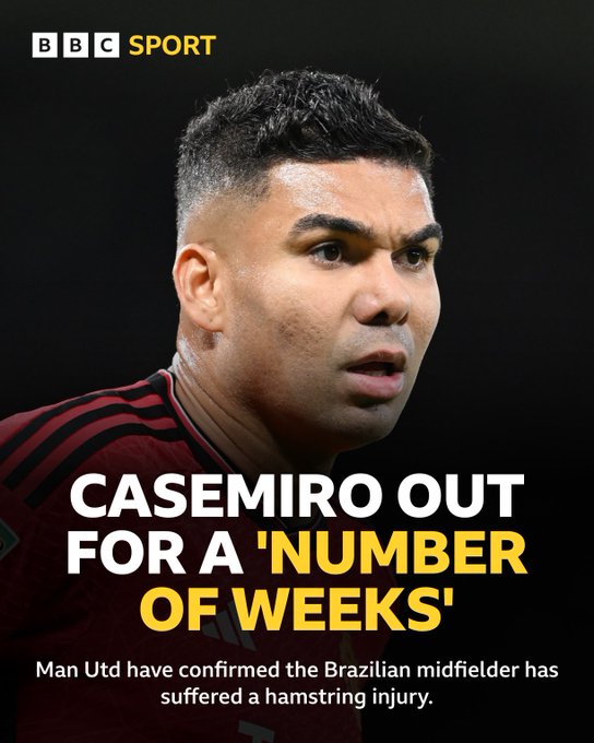 De Braziliaanse middenvelder Casemiro van Manchester United is enkele weken uitgeschakeld vanwege een hamstringblessure die hij heeft opgelopen tijdens de Carabao Cup-nederlaag tegen Newcastle United. De club heeft bevestigd dat hij enige tijd buiten spel zal staan vanwege de blessure. Casemiro werd tijdens de rust van de wedstrijd vervangen vanwege het probleem. Manchester United staat momenteel op de achtste plaats in de Premier League.