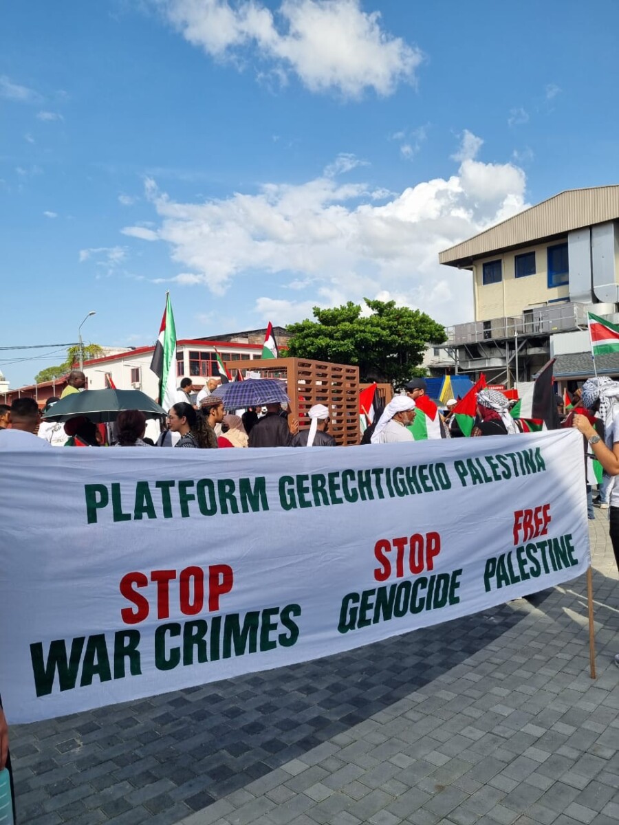 Het Platform Gerechtigheid Palestina heeft gisteren, vrijdag 3 november, een vredesloop gehouden in Paramaribo om aandacht te vragen voor de gewelddadigheden die zich momenteel in de Palestijnse Gazastrook voordoen.