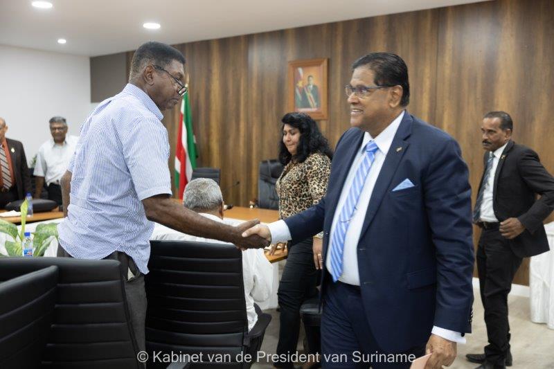 President Chandrikapersad Santokhi heeft woensdag 8 november op zijn Kabinet een vergadering geleid met vertegenwoordigers van vakbonden, in aanwezigheid van het clusterteam van ministers, het onderhandelingsorgaan, de Belastingdienst en leden van de Nationale Assemblee. Verschillende voorstellen zijn besproken met betrekking tot de BTW-wetgeving, met speciale nadruk op de verhogingen van belastingen op brandstof en nutsvoorzieningen, evenals voorstellen voor de verruiming van belastingschijven, zo meldt de Communicatie Dienst Suriname vanochtend, donderdag, de dag dat de vakbonden in actie – ondanks het overleg met de regering – zijn gegaan.