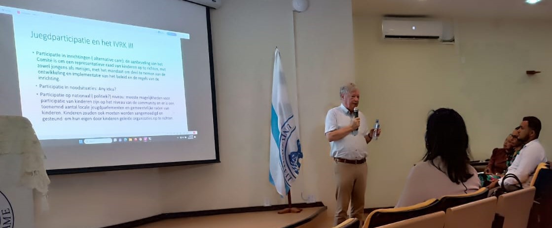 In het Institute for Graduates Studies and Research werd donderdag een speciale lezing gehouden over jeugdparticipatie en de samenhang met kinderrechten. De lezing werd verzorgd door professor Jaap Doek uit Nederland. Professor Doek is geen onbekende op het gebied van kinderrechten. Doek is een emeritus professor familie- en jeugdrecht aan de Vrije Universiteit te Amsterdam en bijzonder hoogleraar rechten van het kind aan de Anton de Kom Universiteit van Suriname Bij de lezing activiteit zeker ook mr. Maya Manohar, mr. Rinnette Djokarto en Sabine de Vries als respectievelijk voorzitter en leden van het Instituut voor kinderrechten aanwezig.