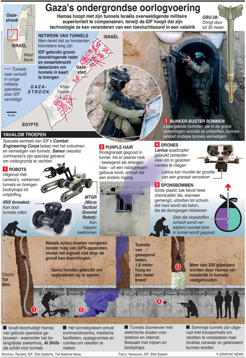 Het Israƫlische leger maakt gebruik van een verscheidenheid aan technologie om het netwerk van tunnels die door Hamas onder Gaza zijn gebouwd en waarvan wordt aangenomen dat ze honderden kilometers lang zijn, te lokaliseren en te vernietigen.