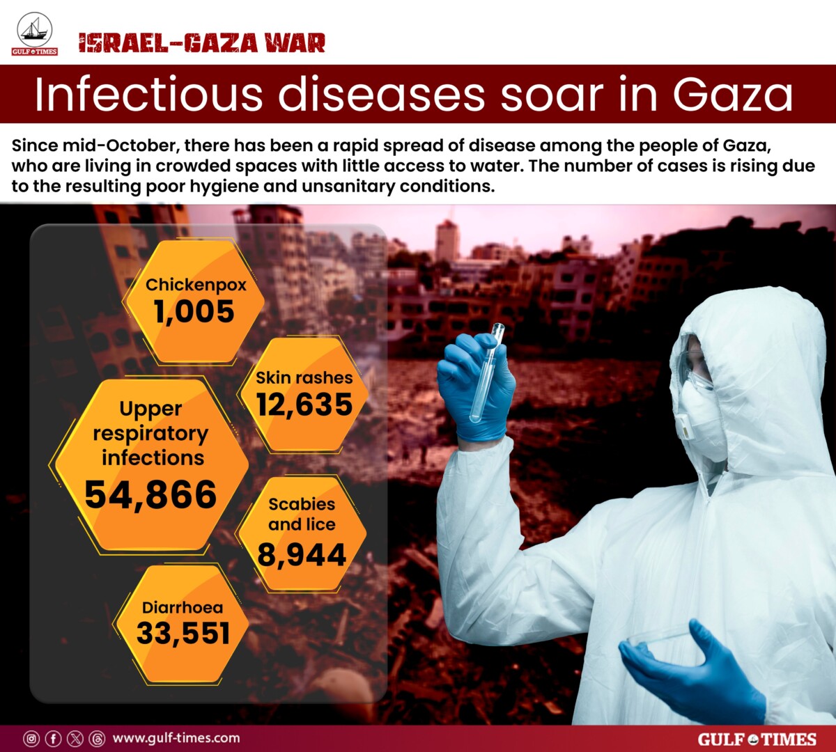 Slechte hygiëne en ongezonde omstandigheden hebben bijgedragen aan de snelle verspreiding van ziekten onder de Palestijnen in de besloten enclave sinds Israël zijn aanval op Gaza begon..