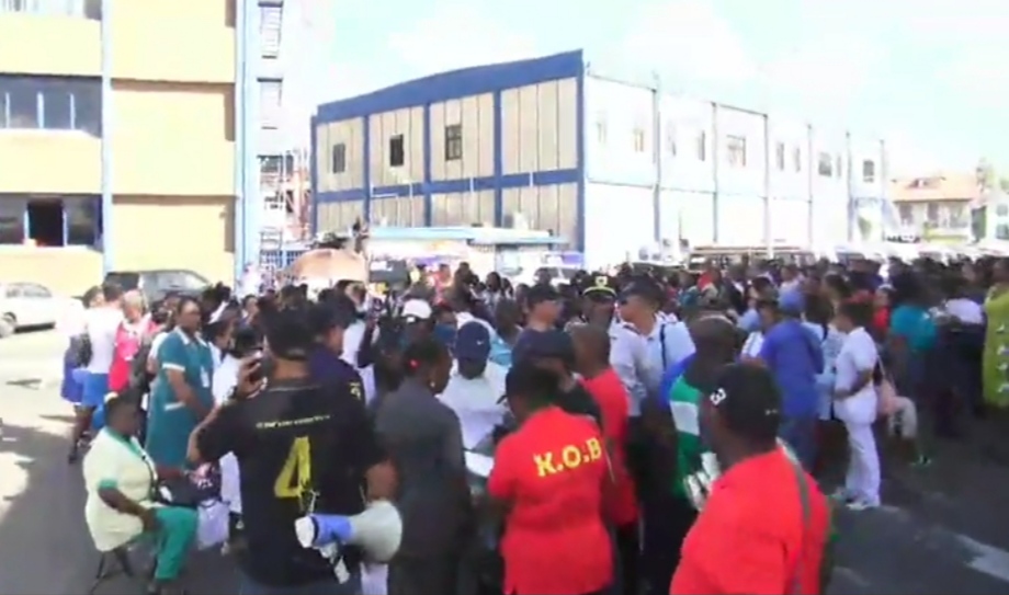 De gezamenlijke vakbonden en hun leden hebben zich vandaag, dinsdag 14 november, verzameld aan de Heiligenweg en zijn van daaruit gelopen naar het Kabinet van de President om een nieuwe motie in te dienen.